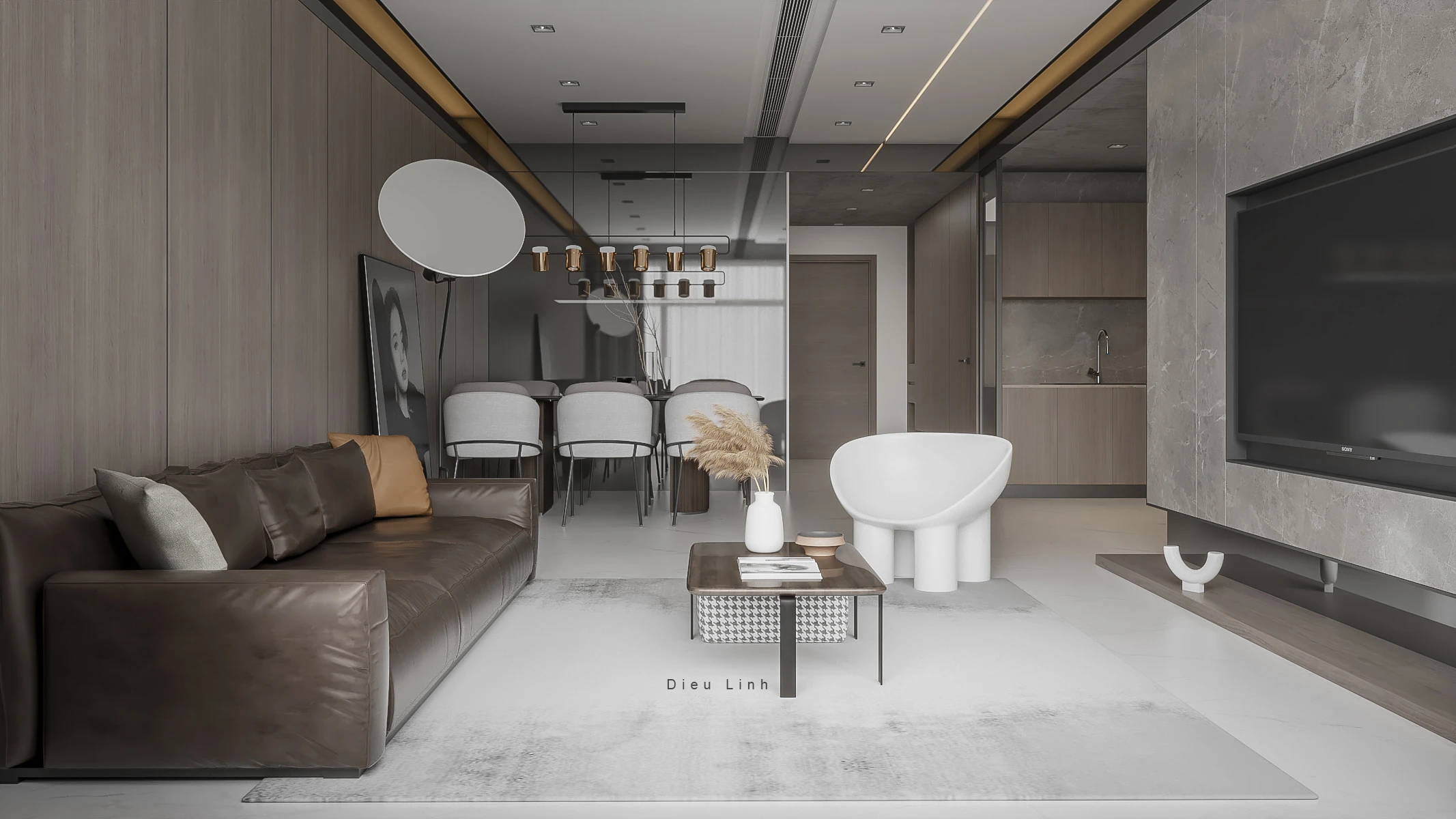 SketchUp Modern Living Dining Room Vray Scene Free Download ID 218000005 (Thoai Tran)